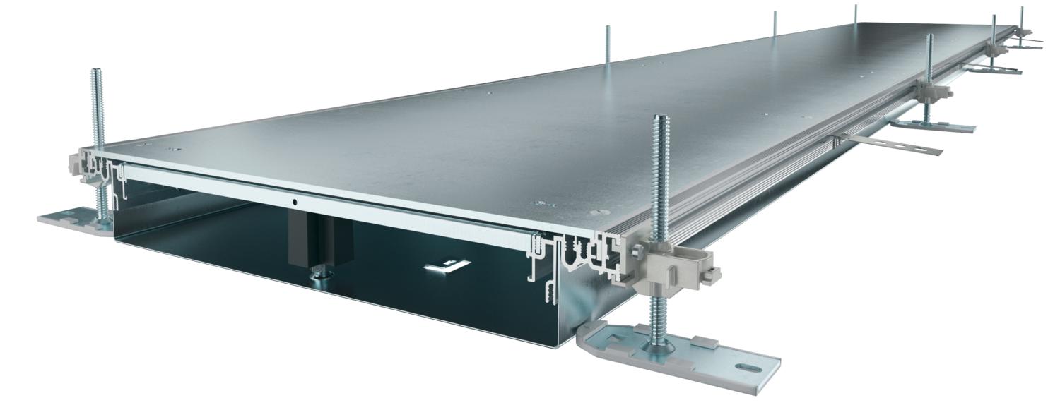 Produkta aprakstsMontāžai gatavs kanāla posms ar 3 pašfiksējošiem noslēgvākiem vadu ievilkšanai, sastāv no kanāla apakšdaļas (grīdā montējama rene ar sānu profiliem un grīdas seguma salaidumprofiliem) un kanāla vāka. Grīdā montējama rene ar stiprinājuma mēlītēm starpliku pašfiksējošai montāžai. Piegādes komplektā ietilpst 6 augstumā regulējami stiprinājuma leņķi, 6 betona enkuri un vāka savienojuma blīves (3 gab. kanāliem ar nominālo platumu 200 un 300) vai augstumā regulējami vāka savienojuma balsti: 3 gab. kanāliem ar nominālo platumu 400 un 6 gab. kanāliem ar nominālo platumu 500 un 600. Piegādājot kanāla vāki ir pieskrūvēti un fiksācijas elementi ir piemontēti