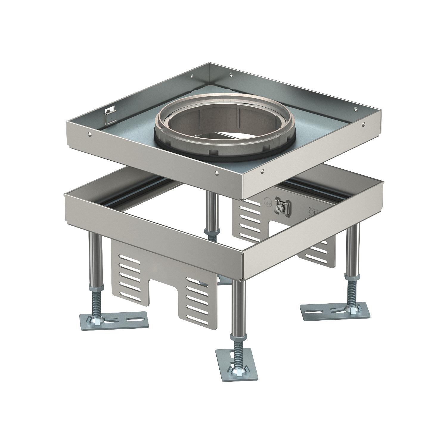 Produkta aprakstsCaurulei paredzēta kvadrātveida kasete ar regulējamu augstumu un nominālo izmēru 4 instalējamo ierīču iebūvēšanai kanālu sistēmās, dubultajās un dobajās grīdās, sausā vai slapjā veidā kopjamās grīdās iekštelpās. Aizsardzības klase: IPX5.