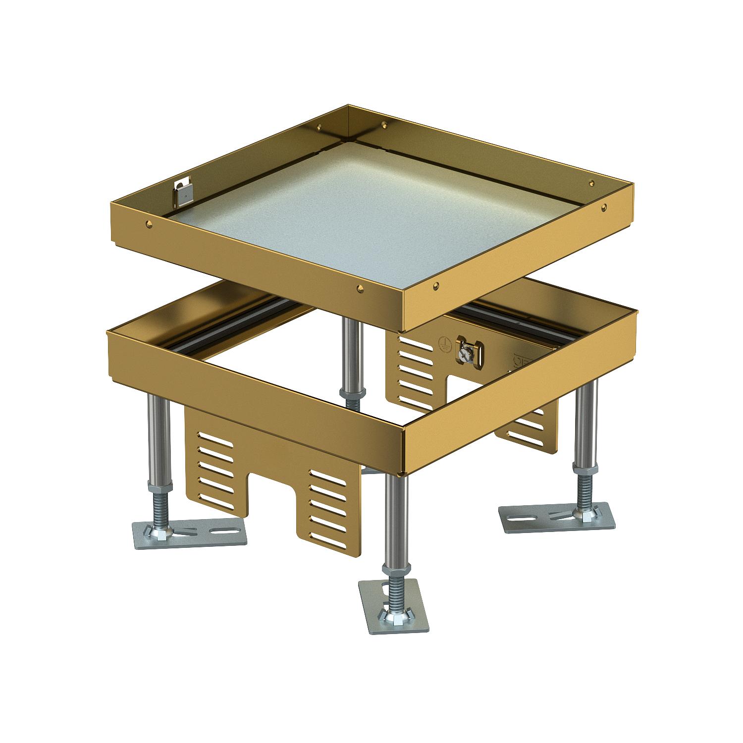 Produkta apraksts"Nosedzoša" kvadrātveida kasete ar regulējamu augstumu nominālā izmēra 4 apkalpošanas lūkas izveidošanai. Montāža kanālu sistēmās, dubultajās un dobajās grīdās, sausā vai slapjā veidā kopjamās grīdās iekštelpās. Der tikai gludiem grīdas segumiem.