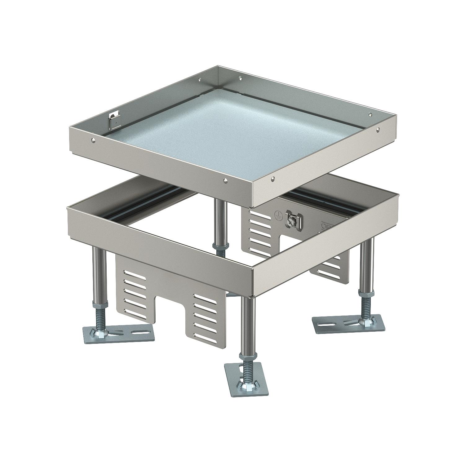 Produkta apraksts"Nosedzoša" kvadrātveida kasete ar regulējamu augstumu nominālā izmēra 4 apkalpošanas lūkas izveidošanai. Montāža kanālu sistēmās, dubultajās un dobajās grīdās, sausā vai slapjā veidā kopjamās grīdās iekštelpās. Der tikai gludiem grīdas segumiem. Aizsardzības klase: IPX5.