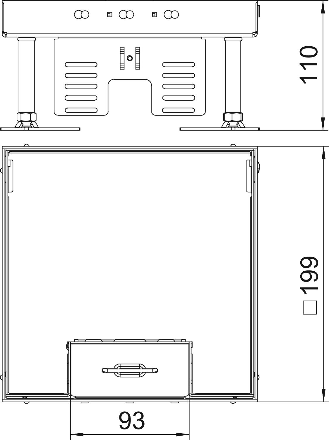 Produkta aprakstsNominālā izmēra 4 kasete ar regulējamu augstumu un kabeļu izeju instalējamo ierīču montāžai sausā vai slapjā veidā kopjamās grīdās iekštelpās.
