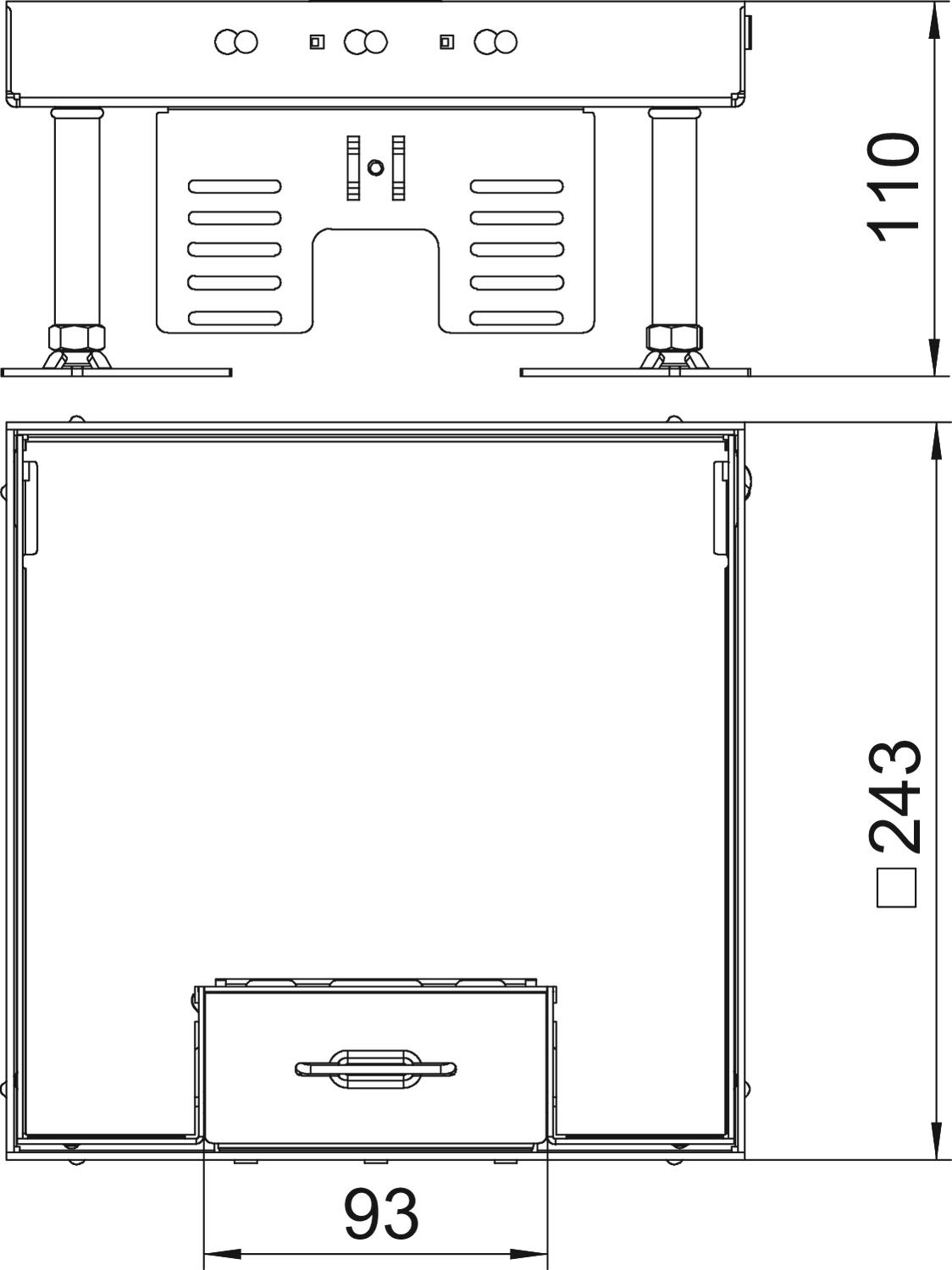 Produkta aprakstsNominālā izmēra 9 kasete ar regulējamu augstumu un kabeļu izeju instalējamo ierīču montāžai sausā vai slapjā veidā kopjamās grīdās iekštelpās.