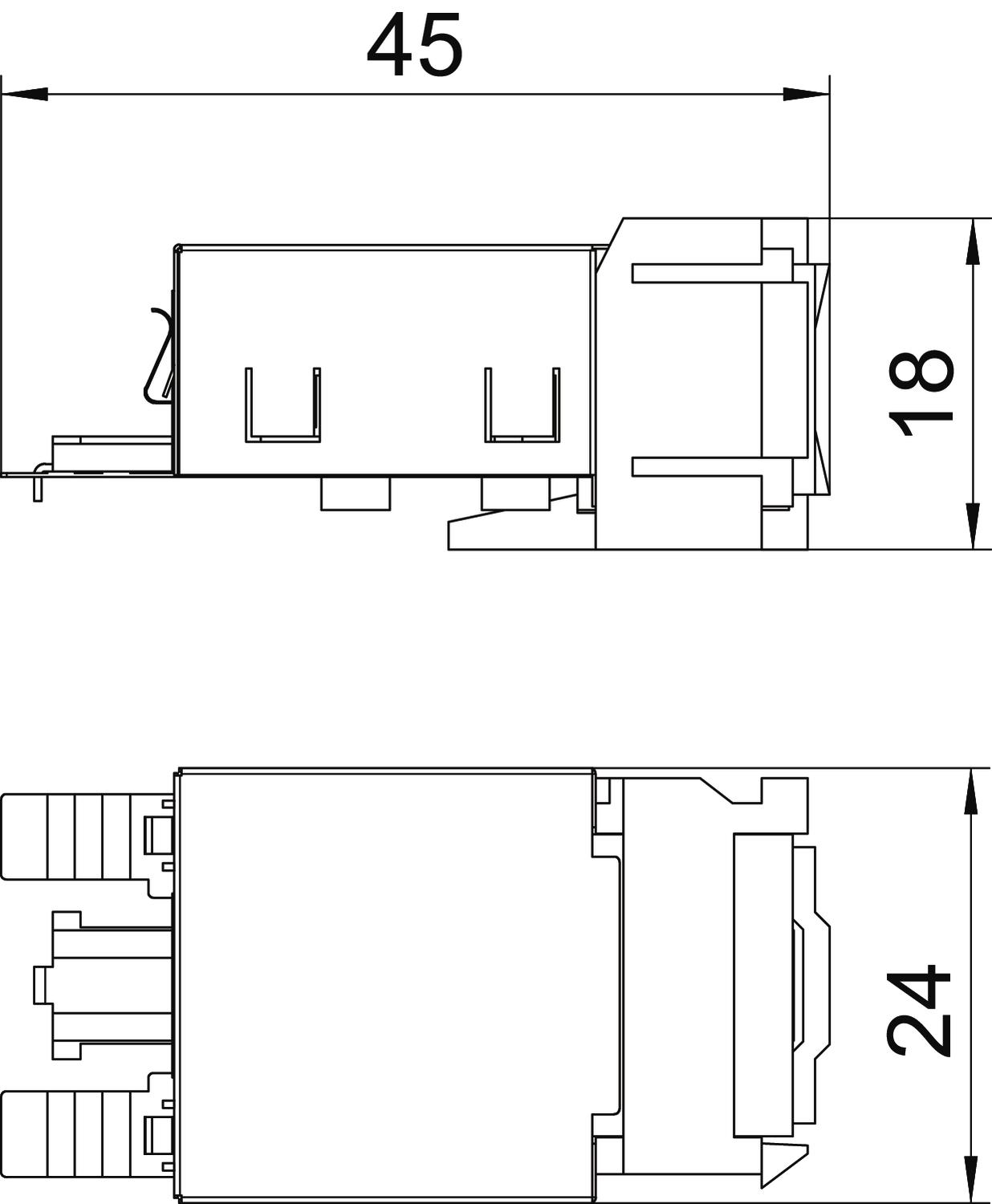Augstums 18 mm CO2 pēdas nospiedums (GWP) no šūpuļa līdz vārtiem 0,0546 kg CO2e / 1 Gabals Ekranizēts jā Garums 45 mm Kategorija 5E Montāžas atvere Tips C Platums 24 mm - Visi tipi