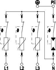 • zibensizlādes strāvas caurlaides spēja 12,5 kA (10/350) katram polam un līdz 50 kA (10/350) kopā