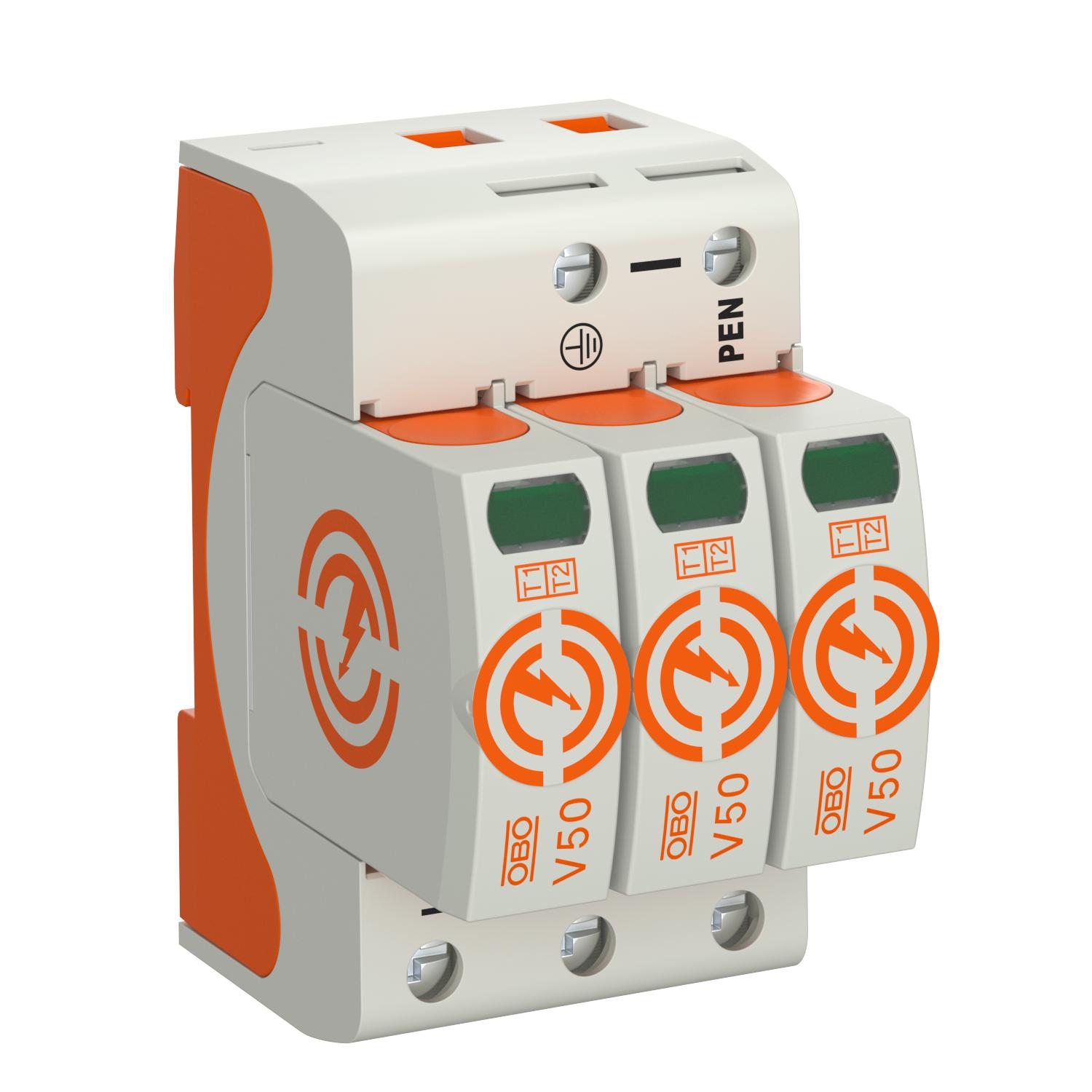 • zibensizlādes strāvas caurlaides spēja 12,5 kA (10/350) katram polam un līdz 50 kA (10/350) kopā