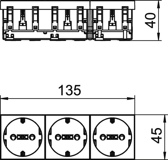 Produkta aprakstsIezemētā kontaktligzda, trīsvietīga 0°, ar paaugstinātu aizsardzību pret pieskaršanos, ar kontaktspailēm, 2 polu, 16 A, 250 V~, ar savienošanas spailēm atb. IEC 60884-1.