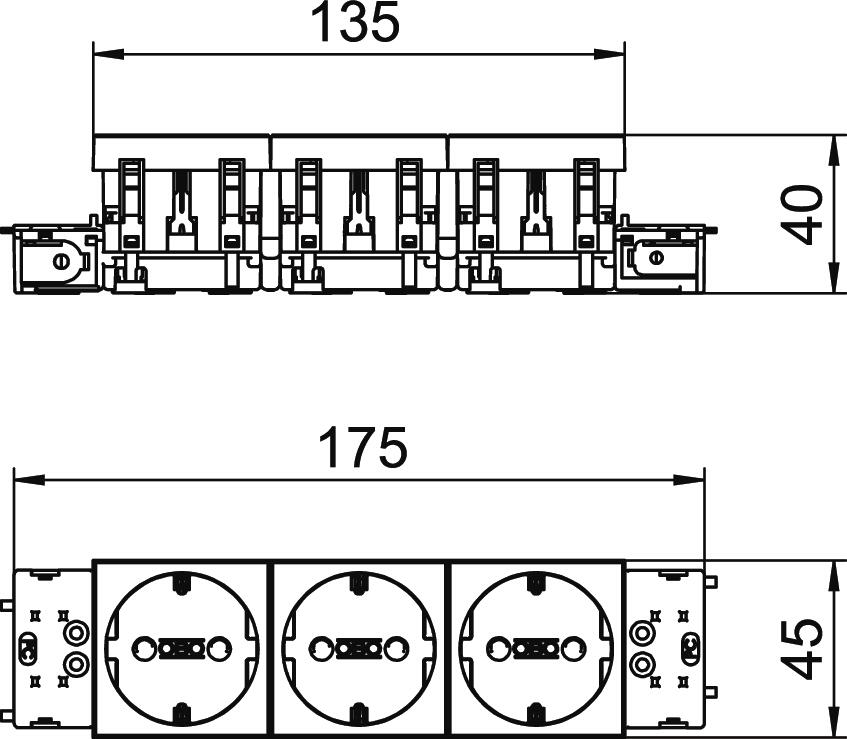 Produkta aprakstsIezemēta kontaktligzda ar pieslēgumu no sāniem Trīsvietīga 0°, ar paaugstinātu aizsardzību pret pieskaršanos, ar kontaktspailēm, 2 polu, 16 A, 250 V~, ar savienošanas spailēm atb. IEC 60884-1, piemērota ierīču montāžas kanālu sistēmas Rapid 45 ierīkošanai.