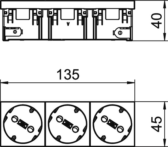 Produkta aprakstsIezemēta kontaktligzda Trīsvietīga 33°, ar paaugstinātu aizsardzību pret pieskaršanos, ar kontaktspailēm, 2-polu, 16 A, 250 V~, ar savienošanas spailēm, atb. IEC 60884-1.