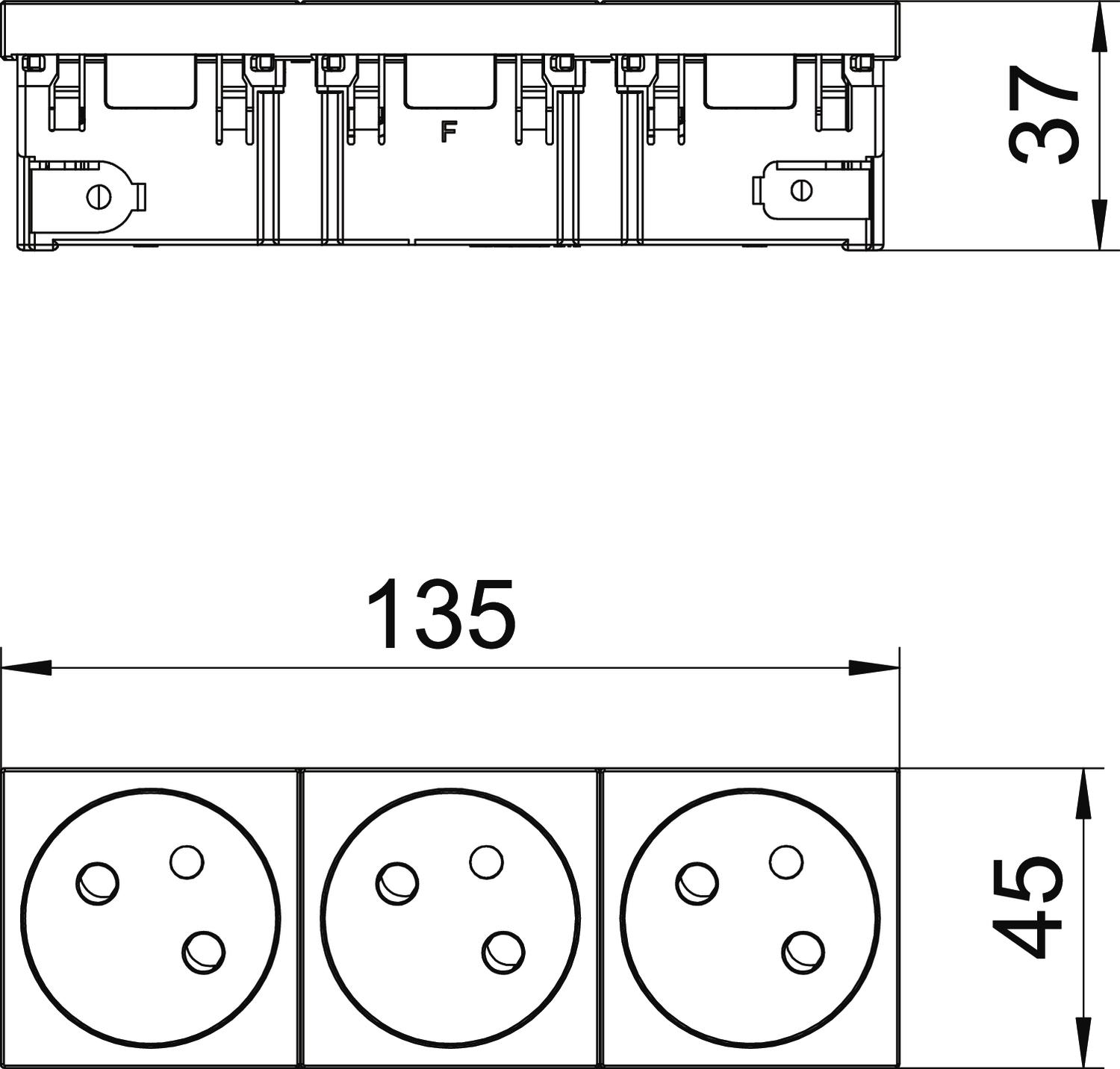 Produkta aprakstsKontaktligzda ar zemējuma tapu un sānu pieslēgumu Trīsvietīga 33°, ar paaugstinātu aizsardzību pret pieskaršanos, ar kontaktspailēm, 2 polu, 16 A, 250 V~, ar savienošanas spailēm atb. IEC 60884-1.