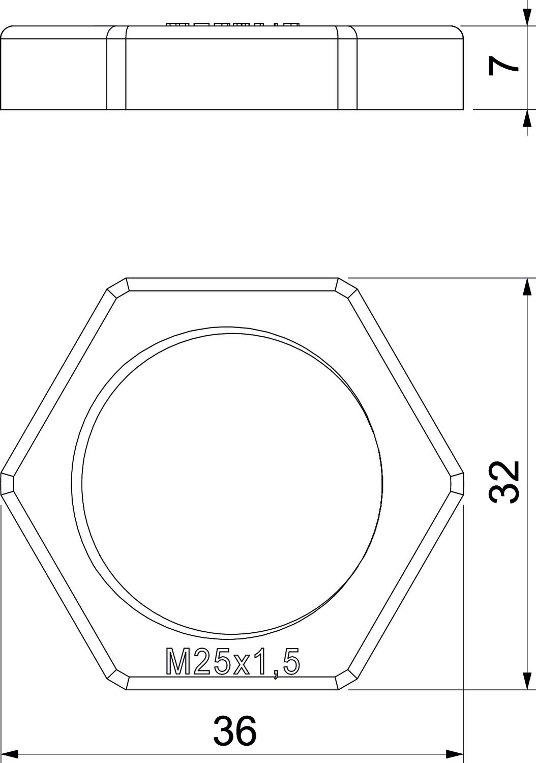 Atslēgas platums 32 CO2 pēdas nospiedums (GWP) no šūpuļa līdz vārtiem 0,0145 kg CO2e / 1 Gabals Izmērs M25 Izmērs e 36 mm Izmērs L 6,5 mm Krāsa gaiši pelēks; RAL 7035 Materiāls Poliamīds Nesatur halogēnus jā Stiegrots ar stikla šķiedru nē Triecienizturīgs nē Vītne M25 x 1,5 Vītnes iekšējais izmērs, metrisks/PG 25 Vītnes veids metrisks - Visi tipi
