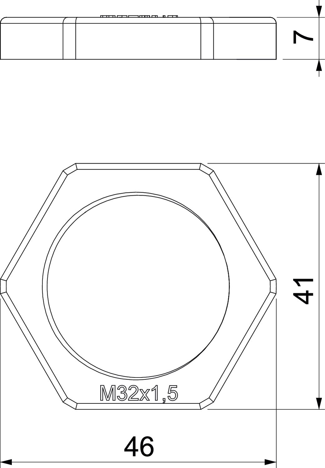 Atslēgas platums 41 CO2 pēdas nospiedums (GWP) no šūpuļa līdz vārtiem 0,026 kg CO2e / 1 Gabals Izmērs M32 Izmērs e 46 mm Izmērs L 7 mm Krāsa gaiši pelēks; RAL 7035 Materiāls Poliamīds Nesatur halogēnus jā Stiegrots ar stikla šķiedru nē Triecienizturīgs nē Vītne M32 x 1,5 Vītnes iekšējais izmērs, metrisks/PG 32 Vītnes veids metrisks - Visi tipi