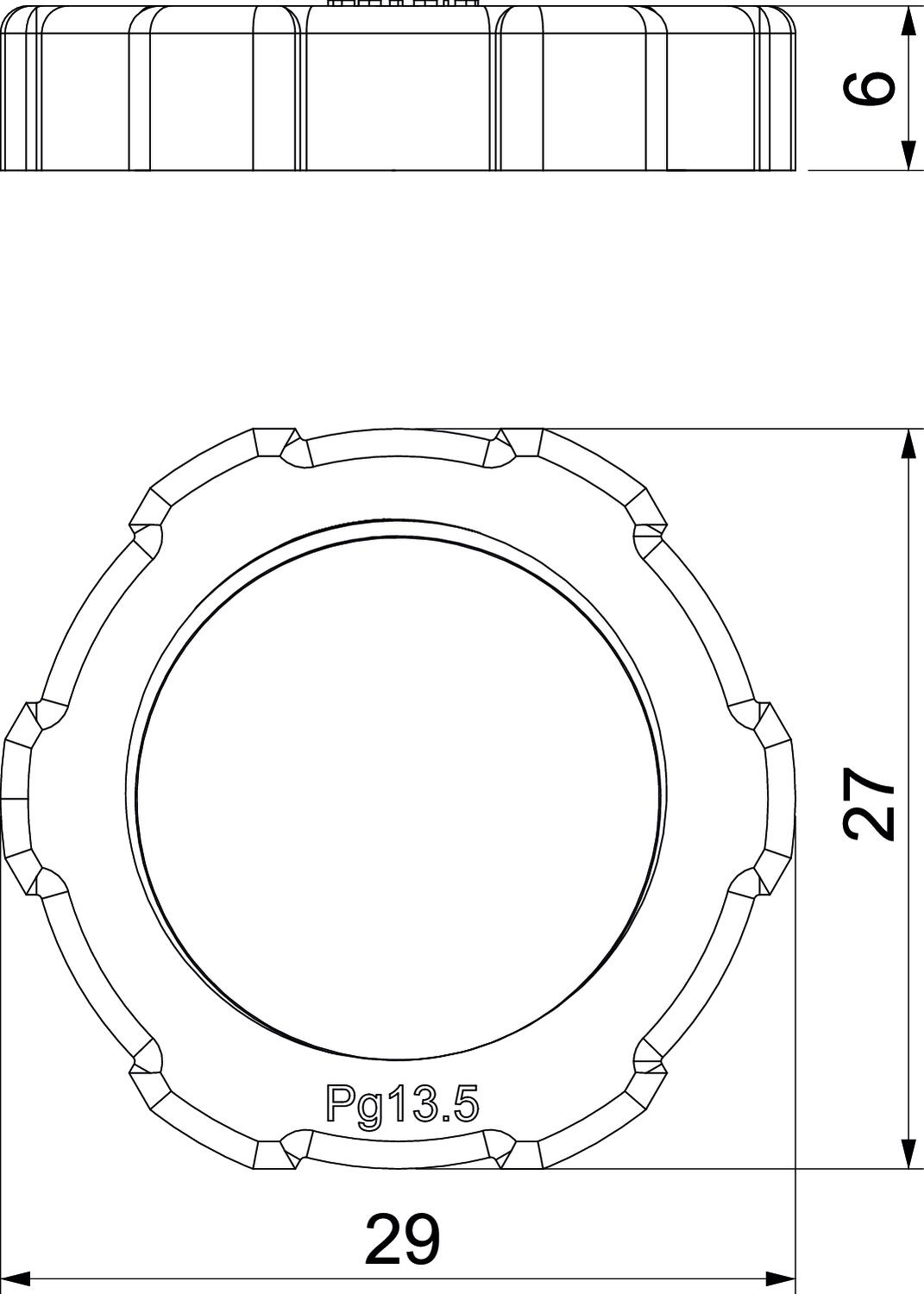 Atslēgas platums 27 CO2 pēdas nospiedums (GWP) no šūpuļa līdz vārtiem 0,012 kg CO2e / 1 Gabals Izmērs PG13,5 Izmērs e 29 mm Izmērs L 6 mm Krāsa gaiši pelēks; RAL 7035 Materiāls Poliamīds Nesatur halogēnus jā Stiegrots ar stikla šķiedru nē Triecienizturīgs nē Vītne Pg 13,5 Vītnes iekšējais izmērs, metrisks/PG 13,5 Vītnes veids PG - Visi tipi