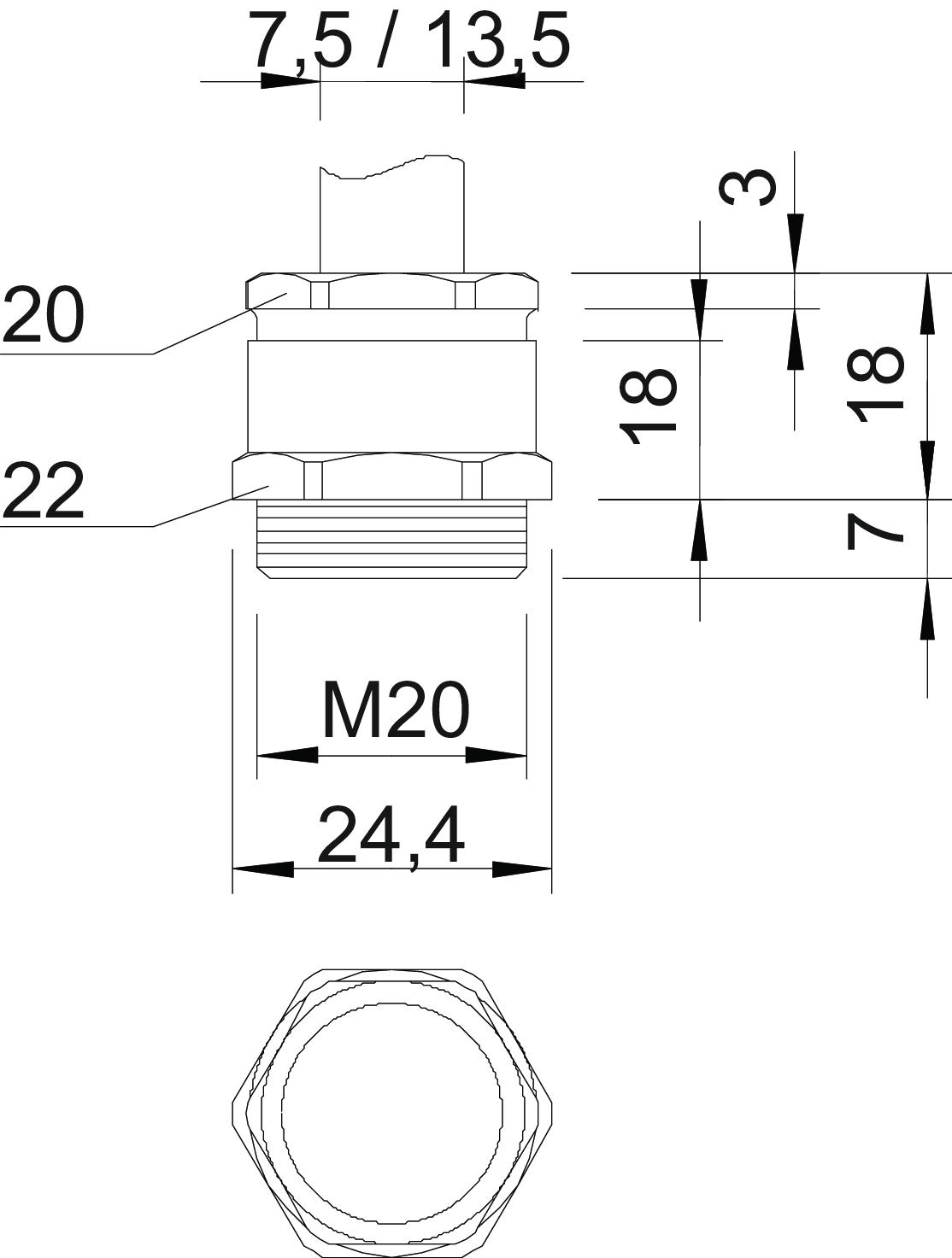 Aizsardzība pret lieci nē Aizsardzības veids IP65 aizsargāta pret eksploziju nē Ar pretuzgriezni nē Atslēgas platums 1 22 mm Atslēgas platums 2 20 mm Blīvējuma veids izgriežams blīvgredzens Blīvējuma virsma D maks. 13,5 mm Blīvējuma virsma D min. 7,5 mm CO2 pēdas nospiedums (GWP) no šūpuļa līdz vārtiem 0,0572 kg CO2e / 1 Gabals Daudzvietīgs blīvēšanas ieliktnis nē Iespēja atbrīvot no sprieguma nē Izmērs L, maks. 18 mm Izmērs M20 Izmērs e 24,4 mm Izmērs L 18 mm Izmērs L1 7 mm Izmērs L2 18 mm Izmērs L3 3 mm Materiāls misiņa Nesatur halogēnus nē Plakanvada skrūvsavienojums nē sprādzienbīstamai zonai bez Stiegrots ar stikla šķiedru nē Triecienizturīgs nē Virsma Niķelēts Vītne M20 x 1,5 Vītnes garums 7 mm Vītnes veids metrisks - Visi tipi