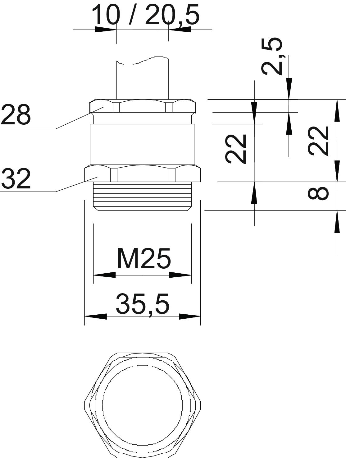 Produkta aprakstsKabeļu ievads ar sešstūra pārejas balstu, forma C4 atb.DIN 46320 ar metrisku savienojuma vītni atb.DIN EN 60423 vai ISO 68. Galvaniski cinkoti un caurspīdīgi pasivēti tērauda piespiedējgredzeni. No NR/SBR izgatavota gredzenblīve.