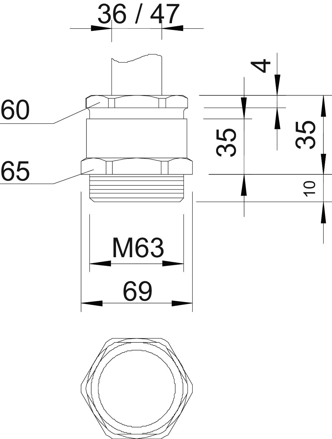 Produkta aprakstsKabeļu ievads ar sešstūra pārejas balstu, forma C4 atb.DIN 46320 ar metrisku savienojuma vītni atb.DIN EN 60423 vai ISO 68. Galvaniski cinkoti un caurspīdīgi pasivēti tērauda piespiedējgredzeni. No NR/SBR izgatavota gredzenblīve.
