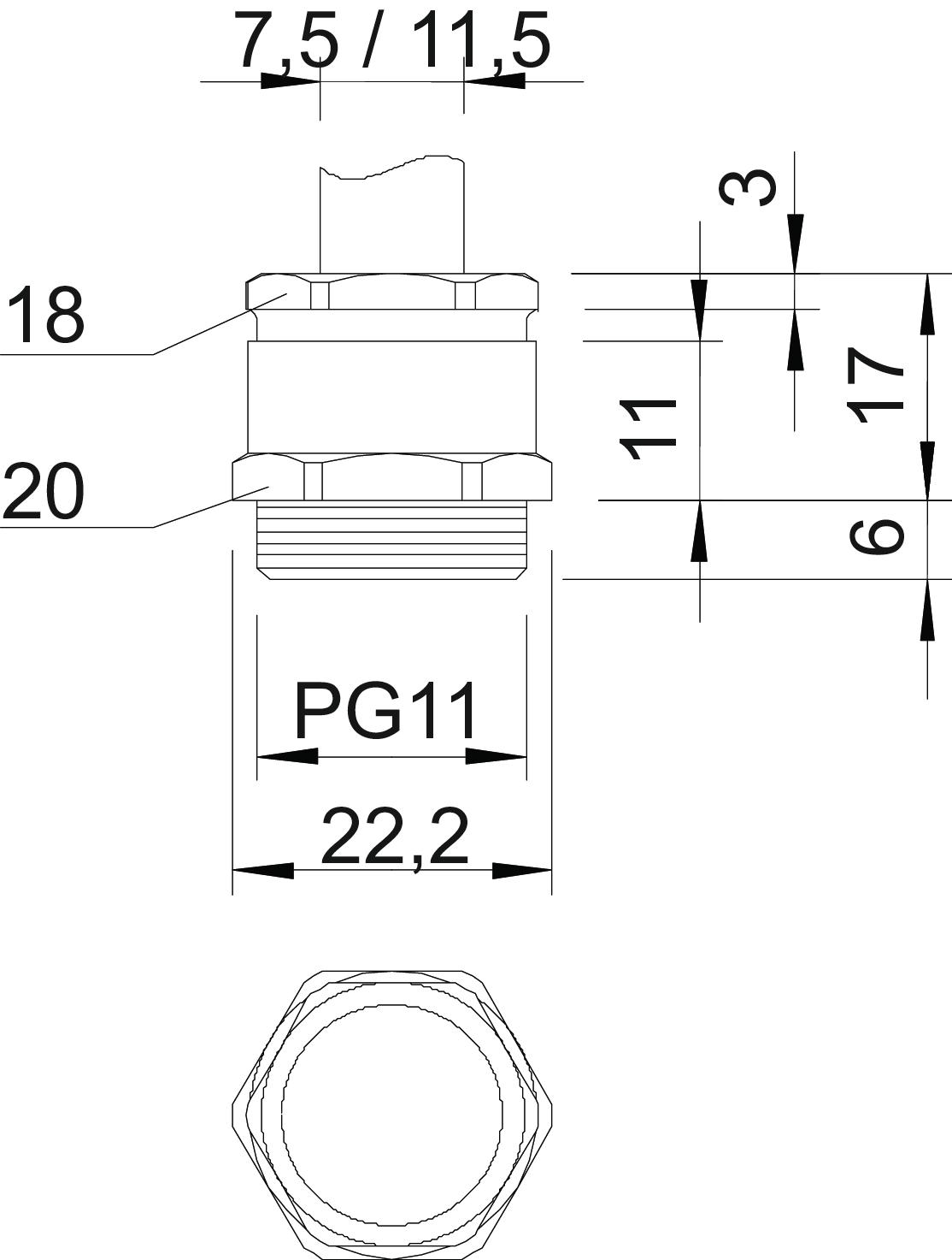 Produkta aprakstsKabeļu ievads ar sešstūra pārejas balstu, forma C4 atb.DIN 46320 ar PG savienojuma vītni atb.DIN 40430.