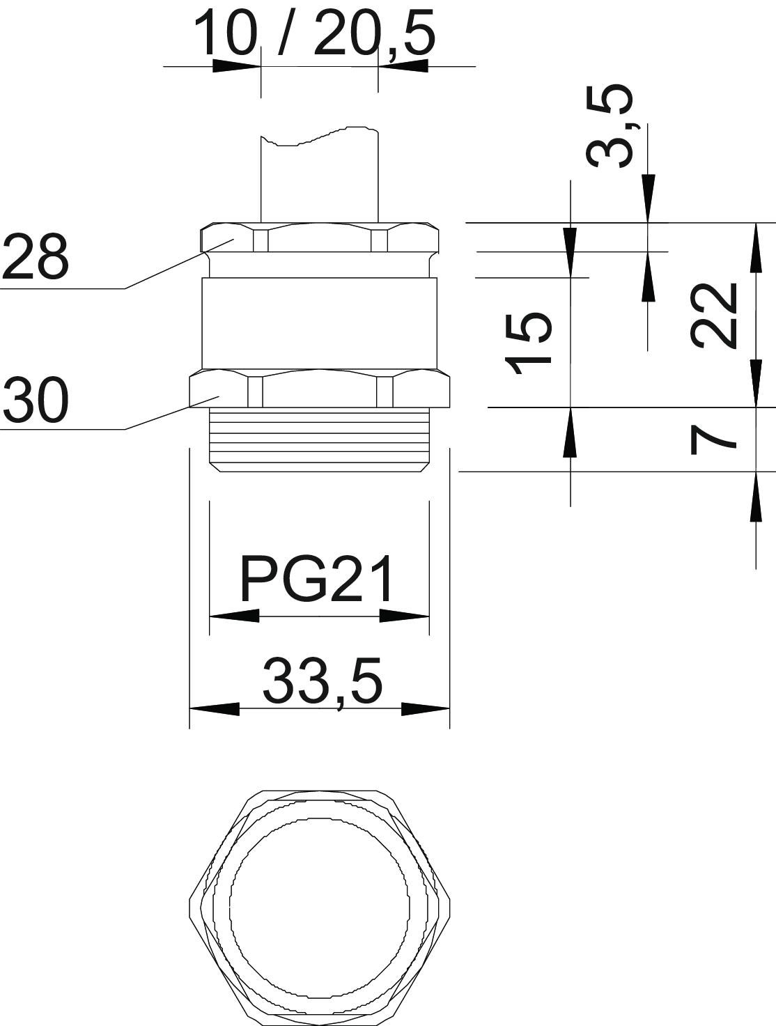Produkta aprakstsKabeļu ievads ar sešstūra pārejas balstu, forma C4 atb.DIN 46320 ar PG savienojuma vītni atb.DIN 40430.