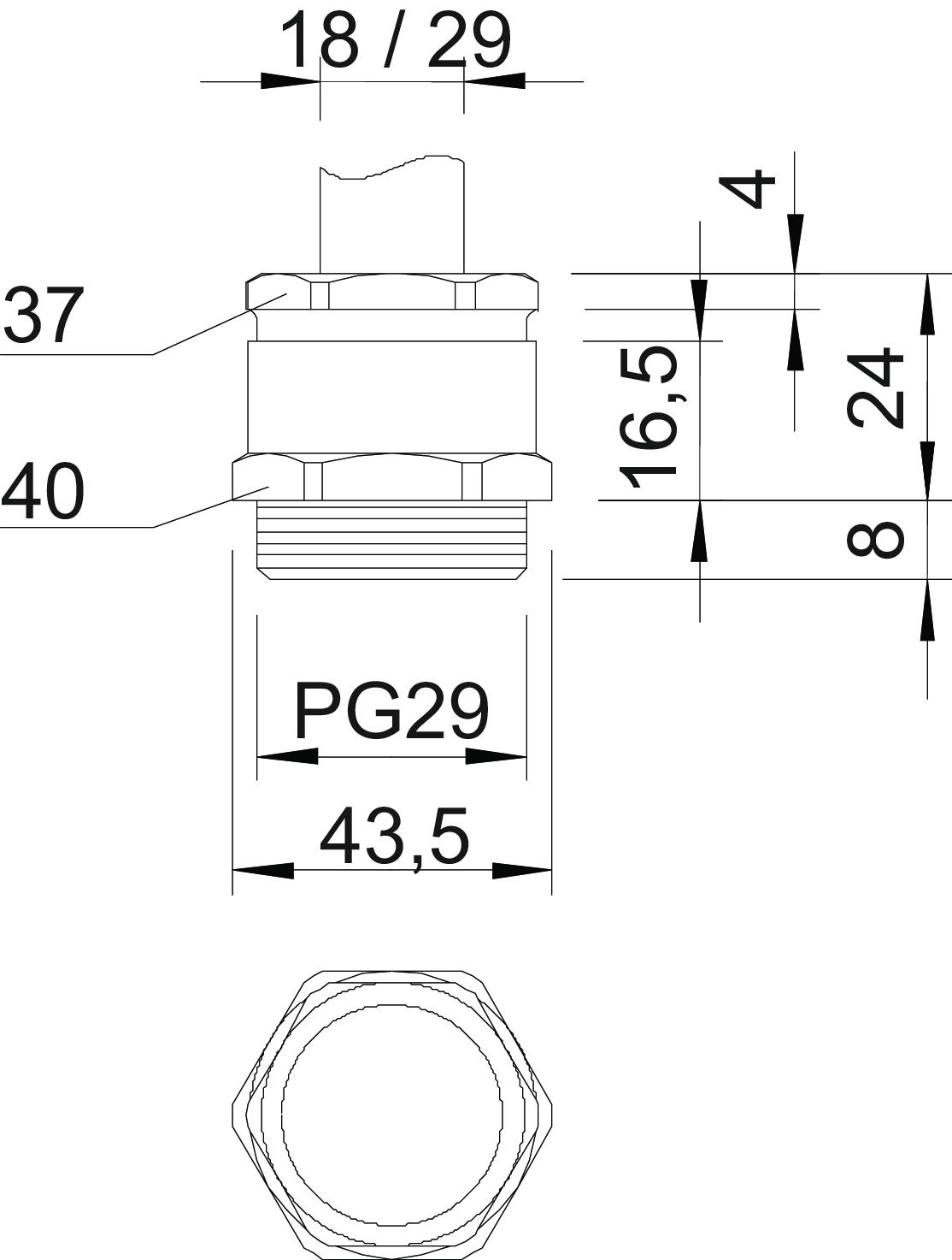 Produkta aprakstsKabeļu ievads ar sešstūra pārejas balstu, forma C4 atb.DIN 46320 ar PG savienojuma vītni atb.DIN 40430.