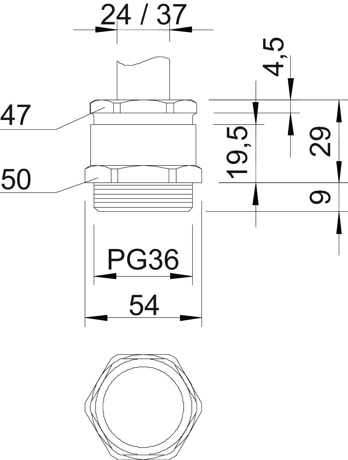 Produkta aprakstsKabeļu ievads ar sešstūra pārejas balstu, forma C4 atb.DIN 46320 ar PG savienojuma vītni atb.DIN 40430.