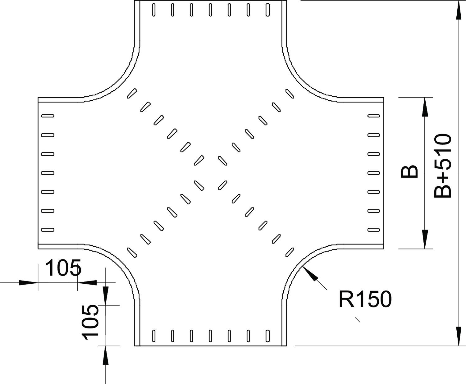 Apaļas formas fasondetaļa. Fasondetaļas iekšējais rādiuss ir 150 mm. Visas malas ir paredzētas vienāda platuma kabeļu renēm.