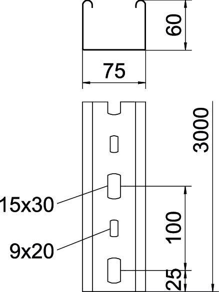 Augstums 60 mm Balstu atstatums 1,5 m 0,8 kN/m Balstu atstatums 2,0 m 0,55 kN/m Balstu atstatums 2,5 m 0,35 kN/m Balstu atstatums 3,0 m 0,25 kN/m CO2 pēdas nospiedums (GWP) no šūpuļa līdz vārtiem 2,7973 kg CO2e / 1 Metrs Derīgais šķērsgriezums 42 cm² Garums 3000 mm Grīdā izveidotas atveres montāžas vajadzībām jā Izmērs 60x75x3000 Kabeļu nesošās sistēmas savienotāju veids skrūvēts Krāsa dzidri balts; RAL 9010 Loksnes biezums 0,75 mm Materiāls Tērauds Nerūsējošs tērauds, kodināts nē Noslogošanas testa tips saskaņā ar IEC 61537 II tips Platums 75 mm Sānu caurumi jā Savienotāja izpildījums bez savienotāja Virsma PES50 – poliesters/epoksīds Tehniskie dati