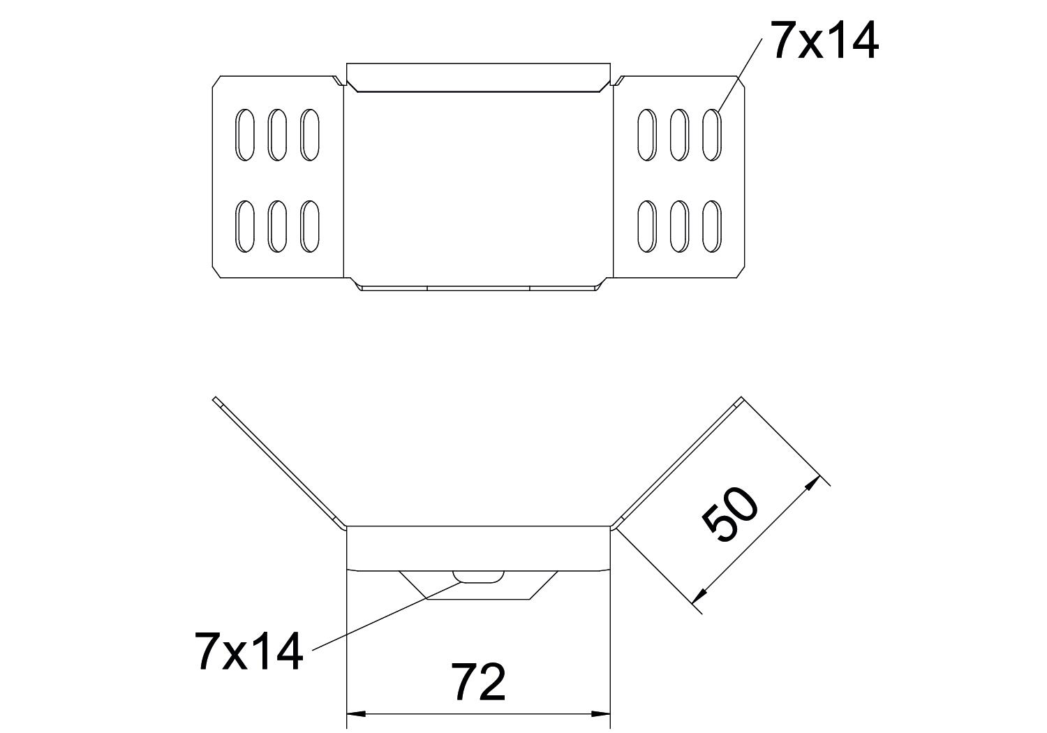 Produkta aprakstsLeņķa savienotājs kabeļu renēm ar 60 mm augstām malām.
