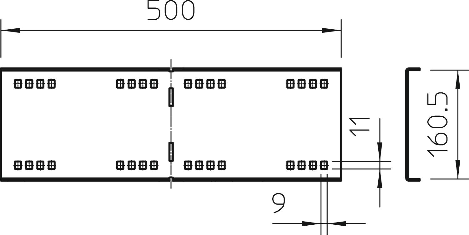 Produkta aprakstsLeņķa savienotājs gara laiduma kabeļu renēm un trepēm ar 160 mm augstām malām.