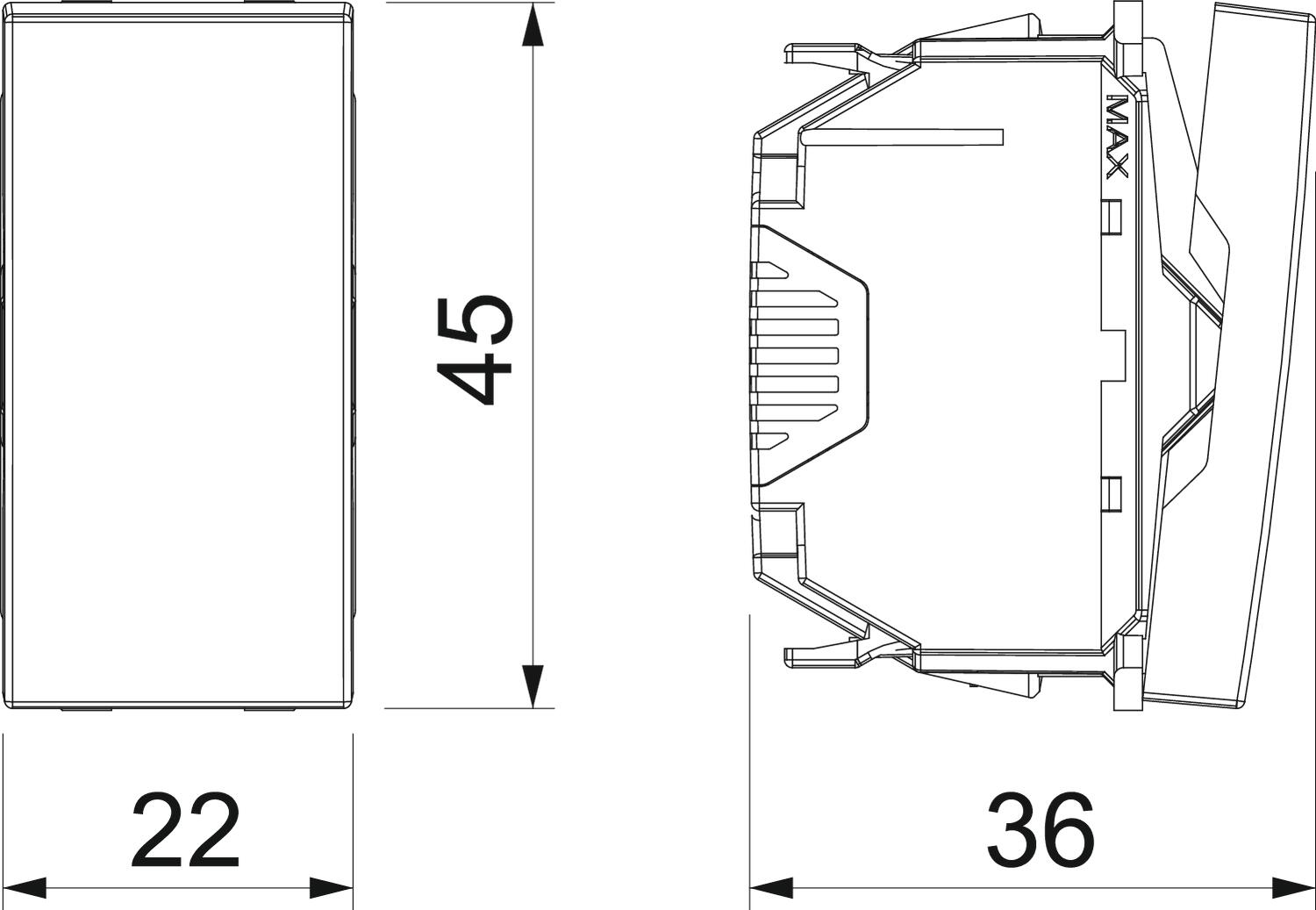 Augstums 45 mm Dziļums 36 mm Izmērs 10 A, 250 V Krāsa alumīnija lakots Materiāls Polikarbonāts Montāžas veids Ierīču montāžas kanāls Nominālā strāva 10 A Nominālais spriegums 250 V Platums 22,5 mm Stiprinājuma veids nofiksēt Virsmas noformējums matēta - Visi tipi