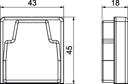 Aizsardzības pakāpes IK kods IK10 Aizsardzības veids IP30 Augstums 45 mm CO2 pēdas nospiedums (GWP) no šūpuļa līdz vārtiem 0,024 kg CO2e / 1 Gabals Garums 18 mm Izmērs 40x40mm Konstrukcijas veids Pēc spiedienliešanas metodes izgatavota detaļa Krāsa grafītmelns; RAL 9011 loksnei ar biezumu min. 0,75 mm Materiāls Termoplastisks elastomērs Nesatur halogēnus jā Piemērots Kabeļu kanāls Platums 43 mm - Visi tipi