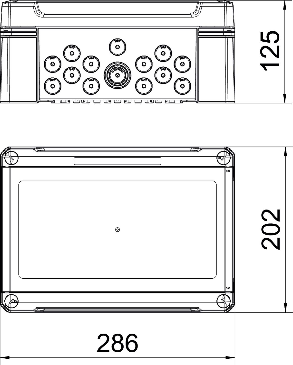- pa 1 kombinētiem izlaužamiem atvērumiem Ø 20/25/32 mm augšā un apakšā