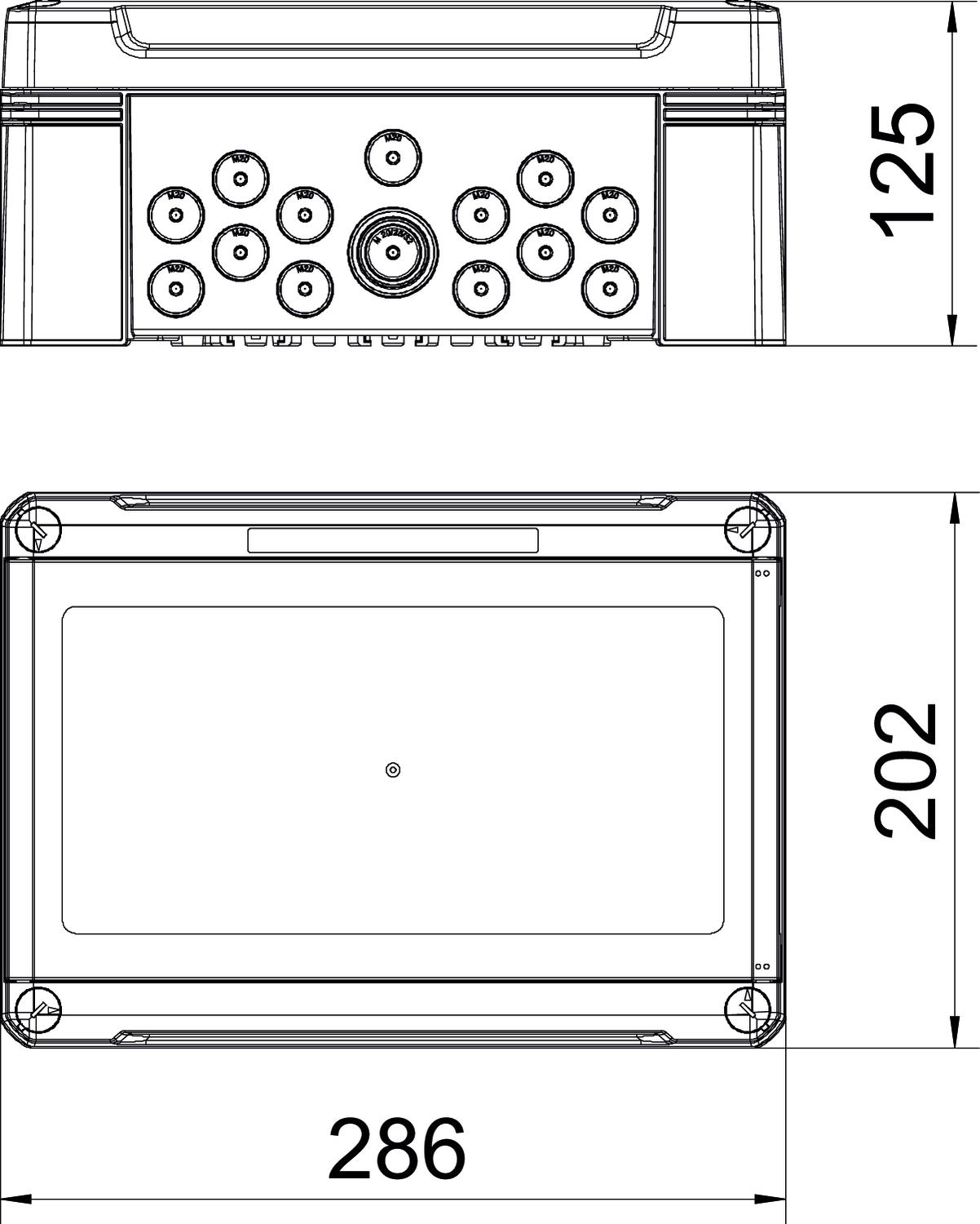 - pa 1 kombinētiem izlaužamiem atvērumiem Ø 20/25/32 mm augšā un apakšā