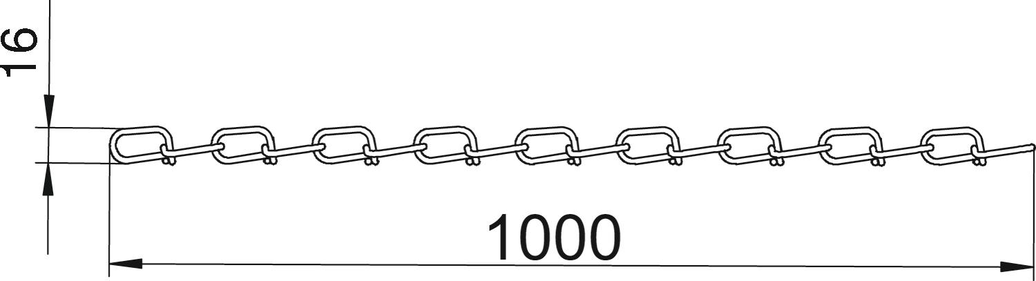 Izpildījums Mezglota ķēde Materiāla biezums 2,7 mm Materiāls Tērauds Min. pārraušanas spēks 0,8 kN Platums 16 mm - Visi tipi