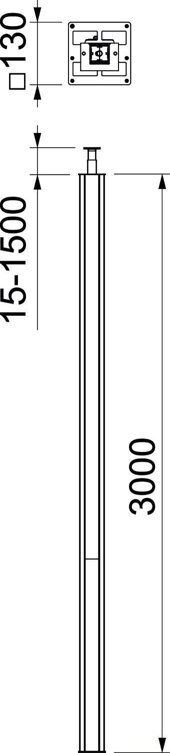 Montāžas balsts ir aprīkots ar iekšēju spriegošanas ierīci, kas nodrošina komfortablu nospriegošanu starp grīdu un griestiem. Ar izbīdāmo teleskopu spriegošanas diapazons ir 3015 mm - 4500 mm. Kabeļus un vadus ar teleskopisko četrmalu cauruli, kā arī tieši no apakšas vai augšas var ievadīt galvenajā profilā.