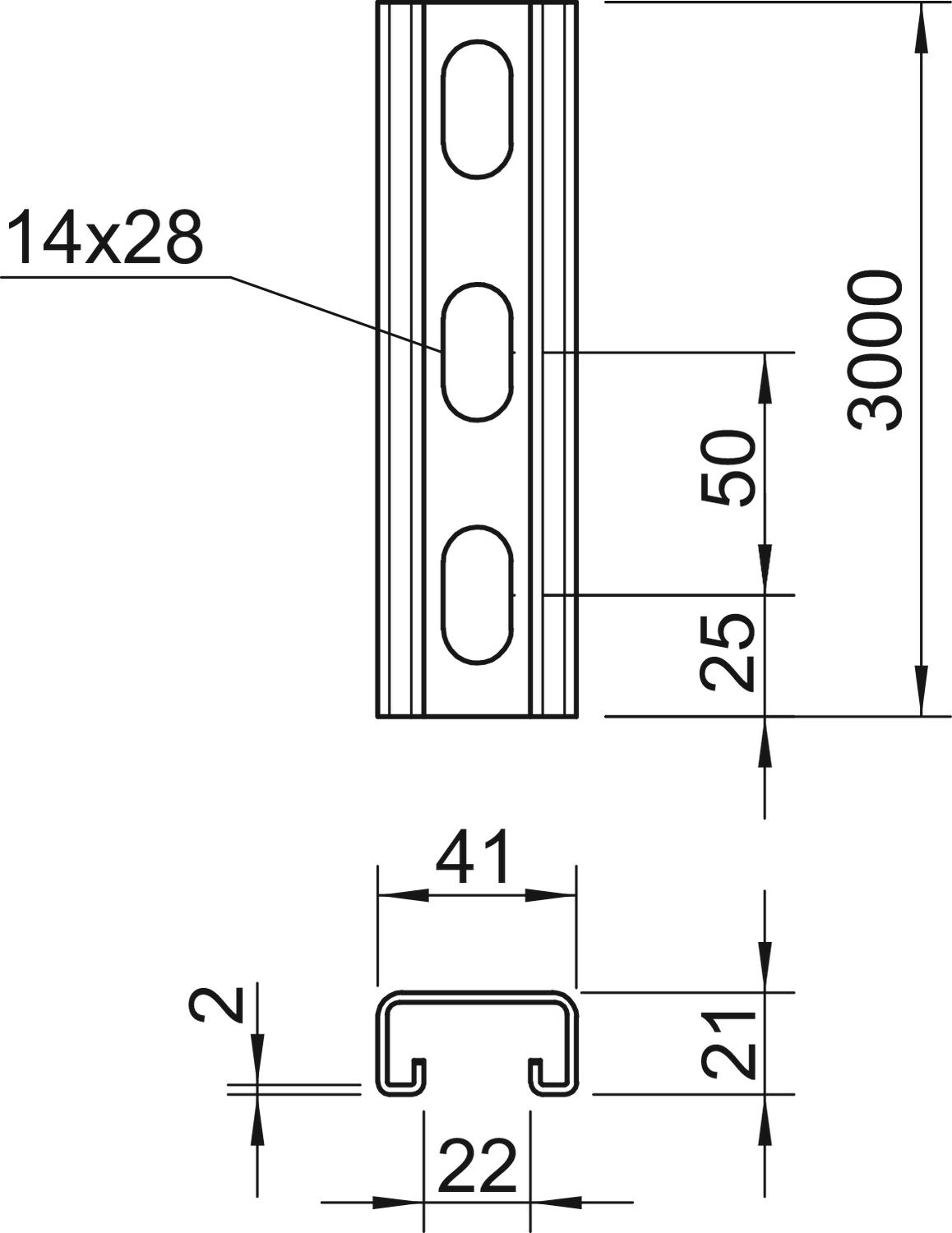 Produkta aprakstsSmaga C profila sliede nesošo konstrukciju montāžai, piem., kabeļu renēm vai sadales skapju konsolēm. Var izmantot arī kabeļu instalācijai, kopā ar rindas apskavām vai piekarapskavām ar U veida kāju.