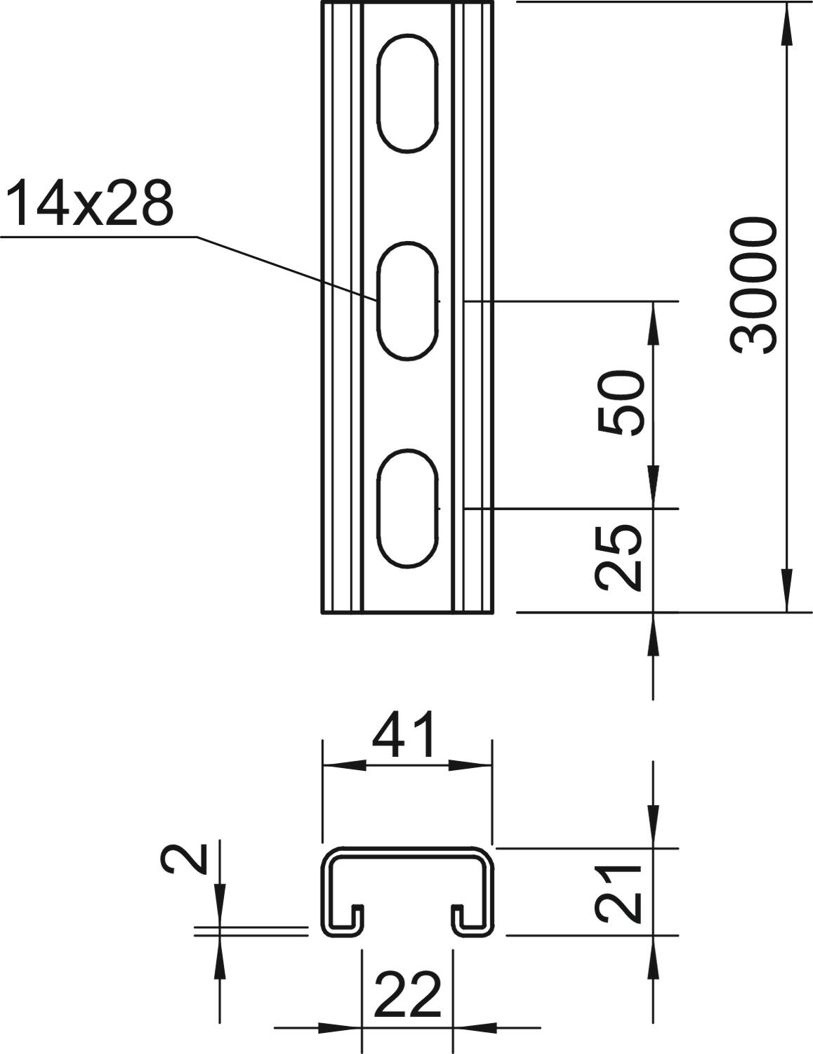 Produkta aprakstsSmaga C profila sliede nesošo konstrukciju montāžai, piem., kabeļu renēm vai sadales skapju konsolēm. Var izmantot arī kabeļu instalācijai, kopā ar rindas apskavām vai piekarapskavām ar U veida kāju.