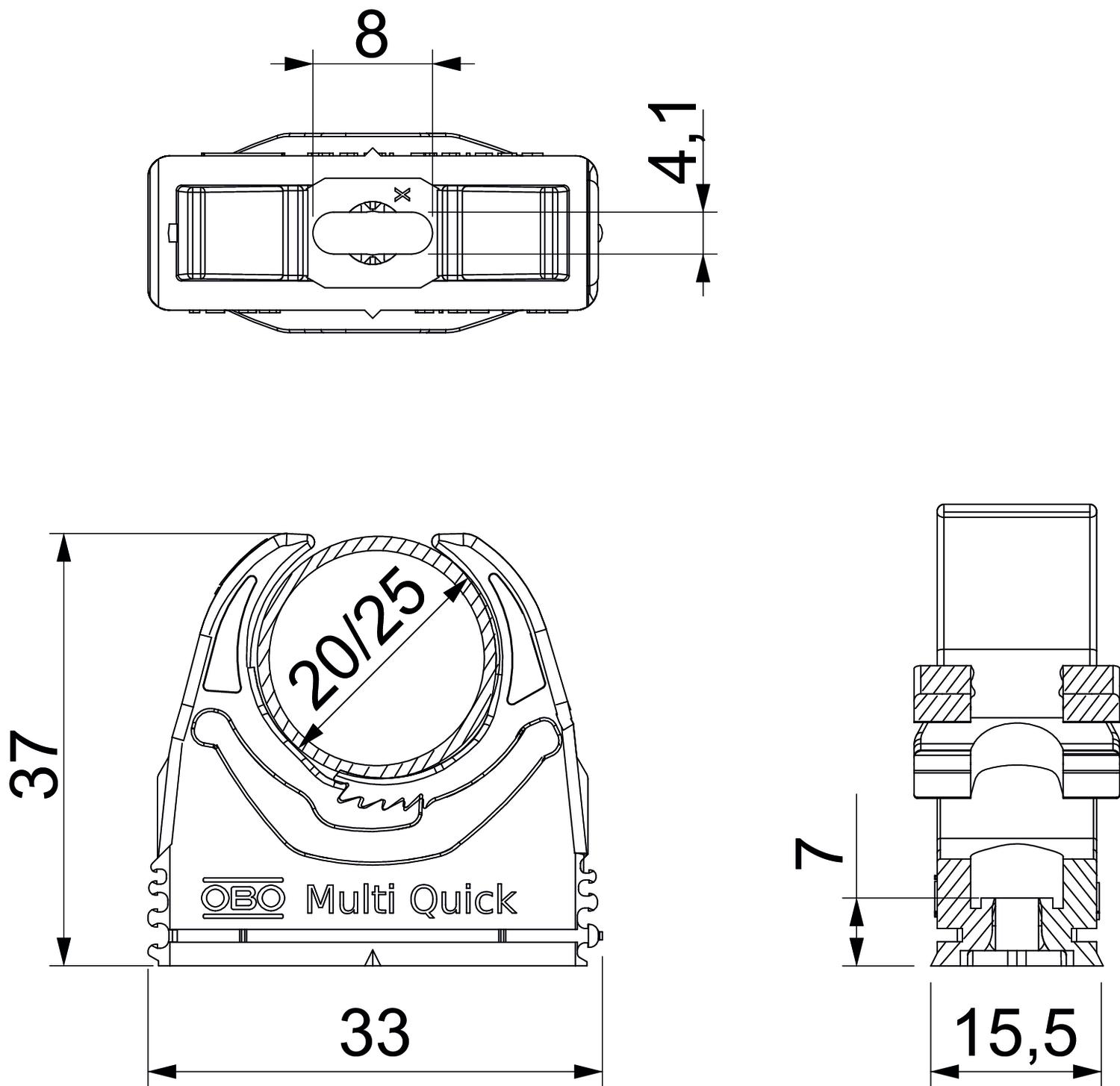 Produkta aprakstsVirsapmetuma apskava metrisko cauruļu, kā arī elektroinstalācijas caurules Quick-Pipe ievietošanai. Elastīgs spriegošanas diapazons vairāku milimetru apjomā. Universāla piestiprināšanas iespēja pie sienas un griestiem telpās un ārpus telpām. Montāža pie caurules bez instrumentiem. Viena ar otru sarindojamas arī ar OBO Quick vai starQuick apskavu.