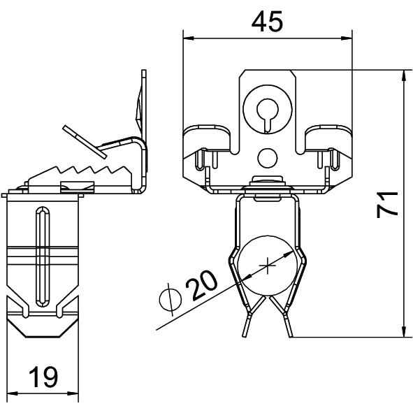 Ar eņģēm nē Atloka biezums F maks. 7 mm Atloka biezums F min. 3 mm Augstums 39 mm Caurules/kabeļa diametrs maks. 22 mm Caurules/kabeļa diametrs min. 18 mm Dimension W 45 mm Eņģes, regulējamas nē Garums 71 mm Izmērs 3-7mm Izmērs L 71 mm Krāsa cinks Materiāls Tērauds Min. pārraušanas spēks 0,11 kN Pievienojuma veids / būvdetaļa Caurule/kabelis Platums 45 mm Stiprinājuma veids Spailes Virsma Cinka lamele - Visi tipi