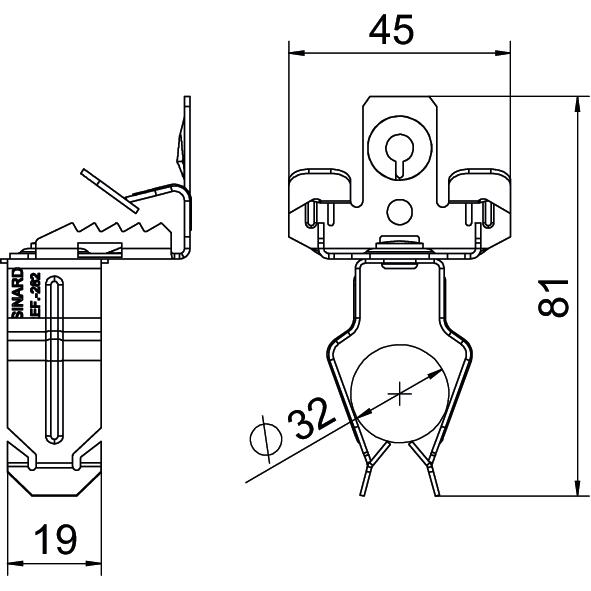 Ar eņģēm nē Atloka biezums F maks. 7 mm Atloka biezums F min. 3 mm Augstums 39 mm Caurules/kabeļa diametrs maks. 35 mm Caurules/kabeļa diametrs min. 30 mm Dimension W 45 mm Eņģes, regulējamas nē Garums 81 mm Izmērs 3-7mm Izmērs L 81 mm Krāsa cinks Materiāls Tērauds Min. pārraušanas spēks 0,11 kN Pievienojuma veids / būvdetaļa Caurule/kabelis Platums 45 mm Stiprinājuma veids Spailes Virsma Cinka lamele - Visi tipi