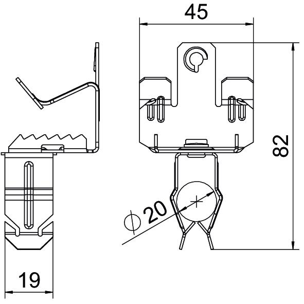 Ar eņģēm nē Atloka biezums F maks. 20 mm Atloka biezums F min. 14 mm Augstums 39 mm Caurules/kabeļa diametrs maks. 22 mm Caurules/kabeļa diametrs min. 18 mm Dimension W 45 mm Eņģes, regulējamas nē Garums 82 mm Izmērs 14-20mm Izmērs L 82 mm Krāsa cinks Materiāls Tērauds Min. pārraušanas spēks 0,11 kN Pievienojuma veids / būvdetaļa Caurule/kabelis Platums 45 mm Stiprinājuma veids Spailes Virsma Cinka lamele - Visi tipi