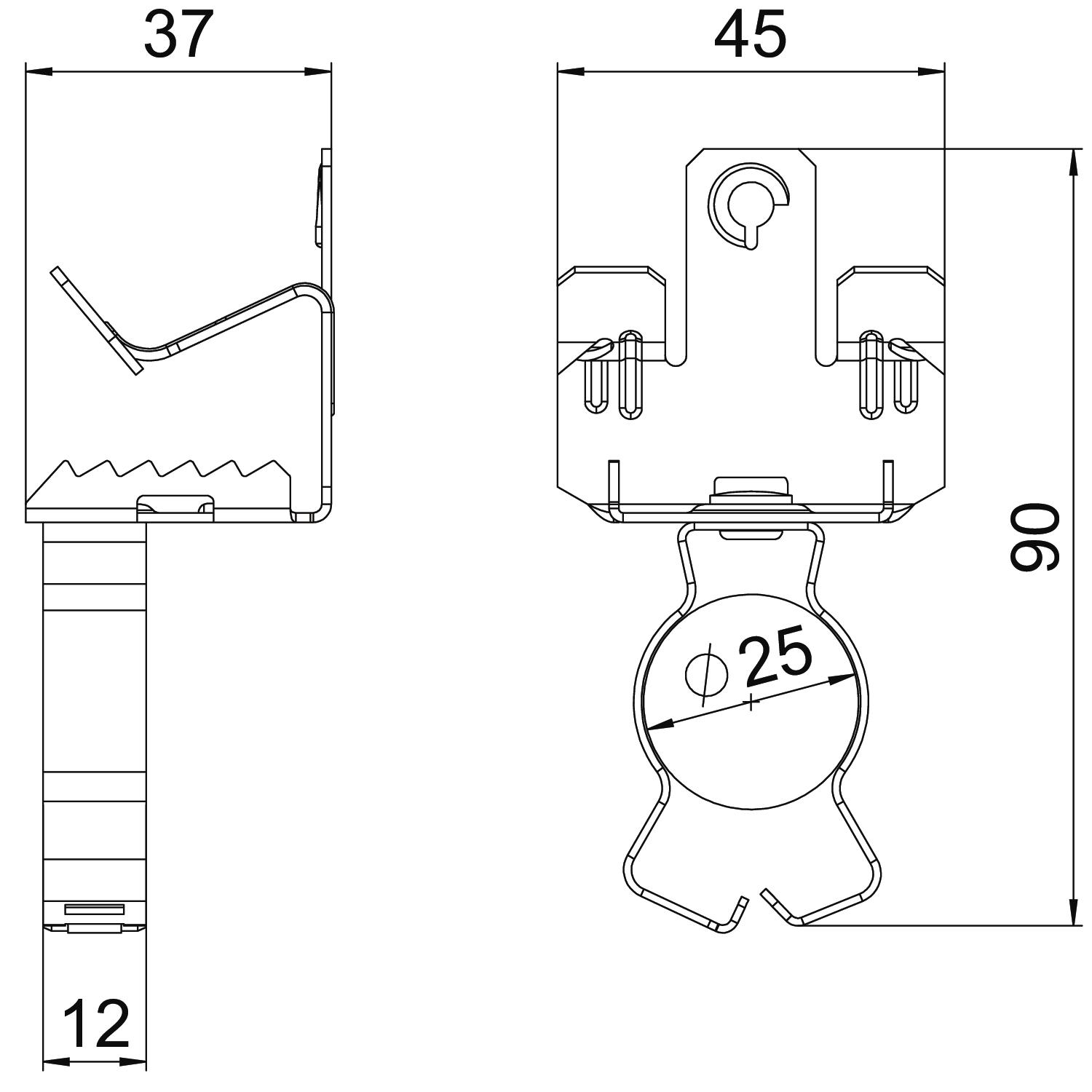 Ar eņģēm nē Atloka biezums F maks. 20 mm Atloka biezums F min. 14 mm Augstums 36 mm Caurules/kabeļa diametrs maks. 25 mm Caurules/kabeļa diametrs min. 20 mm Eņģes, regulējamas nē Garums 92 mm Izmērs 14-20mm Izmērs L 90 mm Krāsa cinks Materiāls Tērauds Min. pārraušanas spēks 0,45 kN Pievienojuma veids / būvdetaļa Caurule/kabelis Platums 45 mm Stiprinājuma veids Spailes Virsma Cinka lamele - Visi tipi