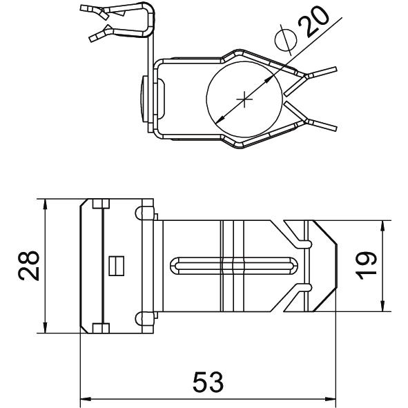Ar eņģēm nē Atloka biezums F maks. 4 mm Atloka biezums F min. 1,5 mm Augstums 31 mm Caurules/kabeļa diametrs maks. 22 mm Caurules/kabeļa diametrs min. 18 mm Dimension W 28 mm Eņģes, regulējamas nē Garums 53 mm Izmērs 1,5-4mm Izmērs L 53 mm Krāsa cinks Materiāls Tērauds Min. pārraušanas spēks 0,11 kN Pievienojuma veids / būvdetaļa Caurule/kabelis Platums 28 mm Stiprinājuma veids Spailes Virsma Cinka lamele - Visi tipi
