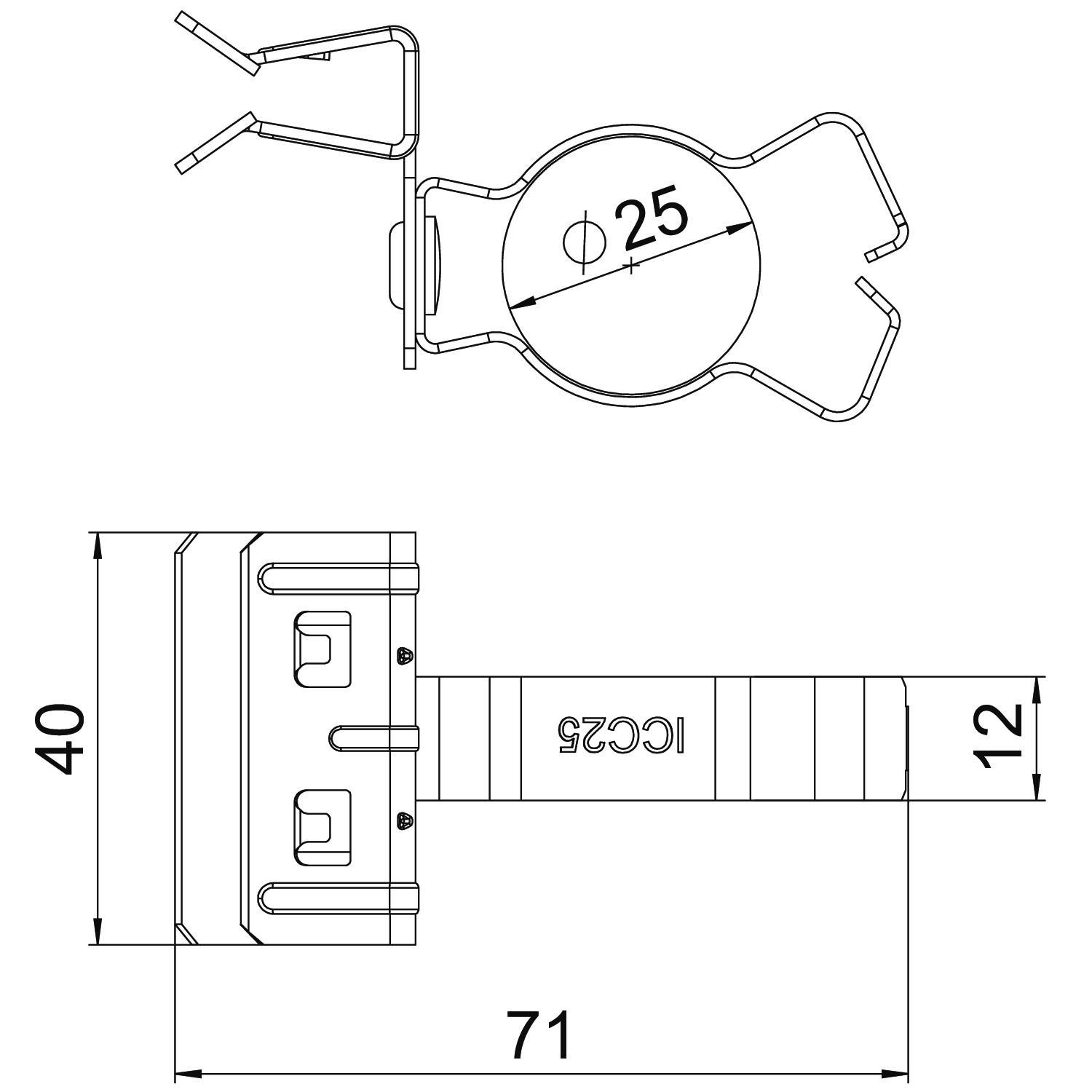 Ar eņģēm nē Atloka biezums F maks. 10 mm Atloka biezums F min. 4 mm Augstums 40 mm Caurules/kabeļa diametrs maks. 25 mm Caurules/kabeļa diametrs min. 20 mm Dimension W 40 mm Eņģes, regulējamas nē Garums 71 mm Izmērs 4-10mm Izmērs L 71 mm Krāsa cinks Materiāls Tērauds Min. pārraušanas spēks 0,45 kN Pievienojuma veids / būvdetaļa Caurule/kabelis Platums 40 mm Stiprinājuma veids Spailes Virsma Cinka lamele - Visi tipi