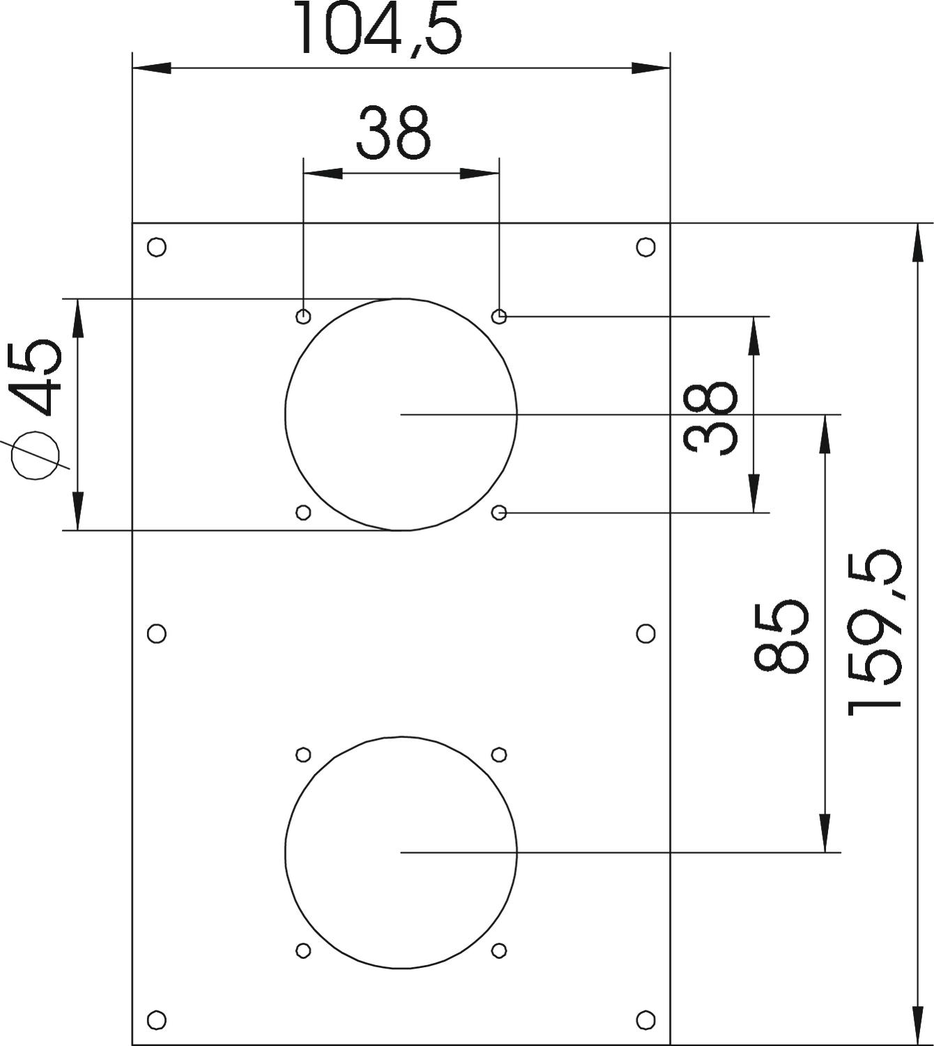 Produkta aprakstsNosegplāksne ar divām Ø 45 mm atverēm divu kontaktligzdu (tips ASD-...), montāžai ar 38 mm stiprinājuma sliedi, ieskaitot 8 skrūves ierīces piestiprināšanai.
