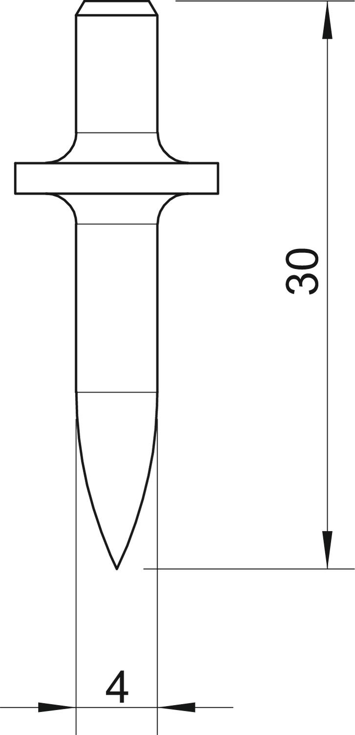 Atloka diametrs 10 mm Garums 30 mm Izmērs L22mm Izmērs D, min. 4 mm Izmērs L 30 mm Kāta garums 22 Materiāls Tērauds Rūdīts jā - Visi tipi