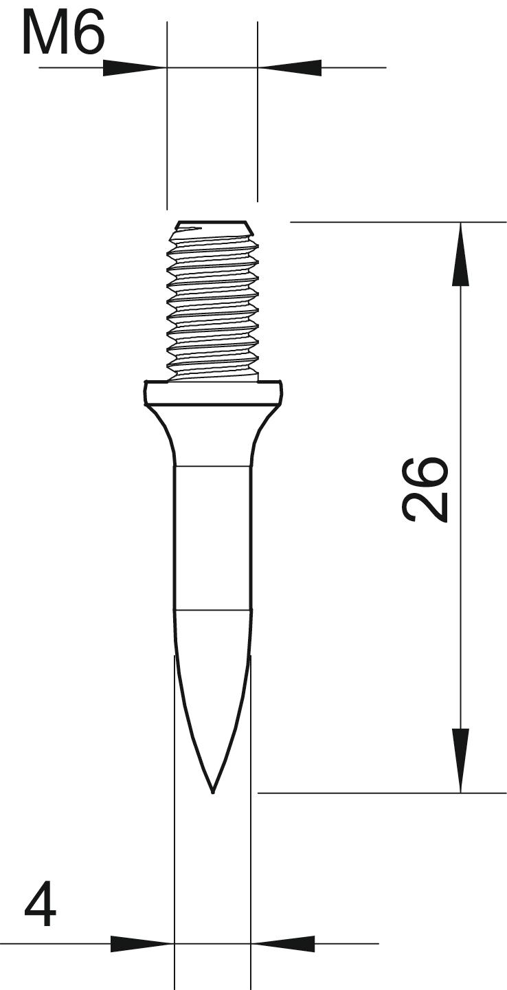Garums 26 mm Izmērs M6, L18mm Izmērs D, min. 4 mm Izmērs G M6 mm Izmērs L 26 mm Kāta garums 18 Materiāls Tērauds Metriskā vītne 6 Rūdīts jā Triecienizturīgs jā Virsma galvaniski cinkota Vītnes garums 8 mm Vītnes veids metrisks - Visi tipi
