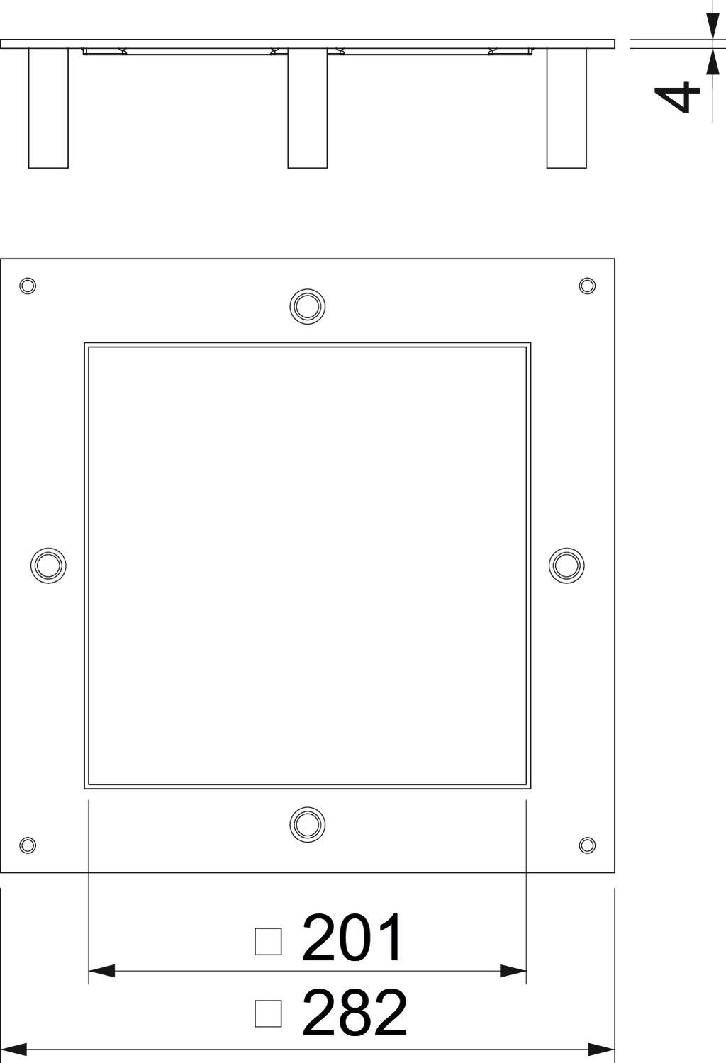 Produkta aprakstsPaaugstinātas izturības montāžas vāks paredzēts UZD250 tipa zemgrīdas kārbai, ir piemērots iebūvēšanai paaugstinātas izturības kvadrātveida kasetē, kuras nominālais lielums ir 4. Montāžas atvere ir padziļināta par 3 mm, un to var noslēgt ar vāka nosegplāksni.