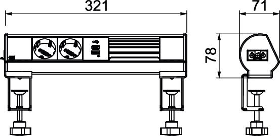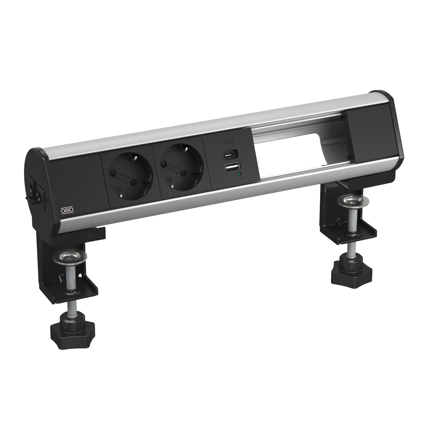 Produkta aprakstsPieslēgšanai gatavā paneļa kārba DBL tam, lai uzreiz nodrošinātu darba vietas ar enerģijas, sakaru un datu pārraides tehnikas pieslēgumiem. Ar Wieland GST18® pieslēgumu no kreisās puses no profila. Montāža bez darbarīkiem ar divām stiprinājuma apskavām galda plāksnēm ar biezumu no 8 līdz 40 mm standarta stiprinājuma apskavu un no 40 līdz 70 mm ar stiprinājuma apskavu DBZ-BZL70. Paneļa kārba ir aprīkota ar 2 melnām 33° spraušanas pozīcijas iezemētām kontaktligzdām un 18 W USB A+C USB uzlādes ierīci. Paneļa kārbai papildus ir 2 tukšas vietas 2 Modul 45® instalācijas ierīču papildu montāžai.