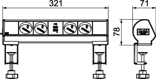 Produkta aprakstsPieslēgšanai gatavā paneļa kārba DBL tam, lai uzreiz nodrošinātu darba vietas ar enerģijas pieslēgumiem. Ar Wieland GST18® pieslēgumu no kreisās puses no profila. Montāža bez darbarīkiem ar divām stiprinājuma apskavām galda plāksnēm ar biezumu no 8 līdz 40 mm standarta stiprinājuma apskavu un no 40 līdz 70 mm ar stiprinājuma apskavu DBZ-BZL70. Paneļa kārba ir aprīkota ar 4 melnām 33° spraušanas pozīcijas NF kontaktligzdām un vienu 18 W USB A+C USB uzlādes ierīci.
