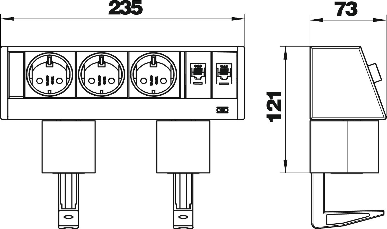 Produkta aprakstsPaneļa kārba ar pieslēguma kabeli, kabeļa izeju profila apakšpusē, ar divām stiprinājuma spīlēm pie galda plates, kuras biezums no 8 līdz 40 mm.
