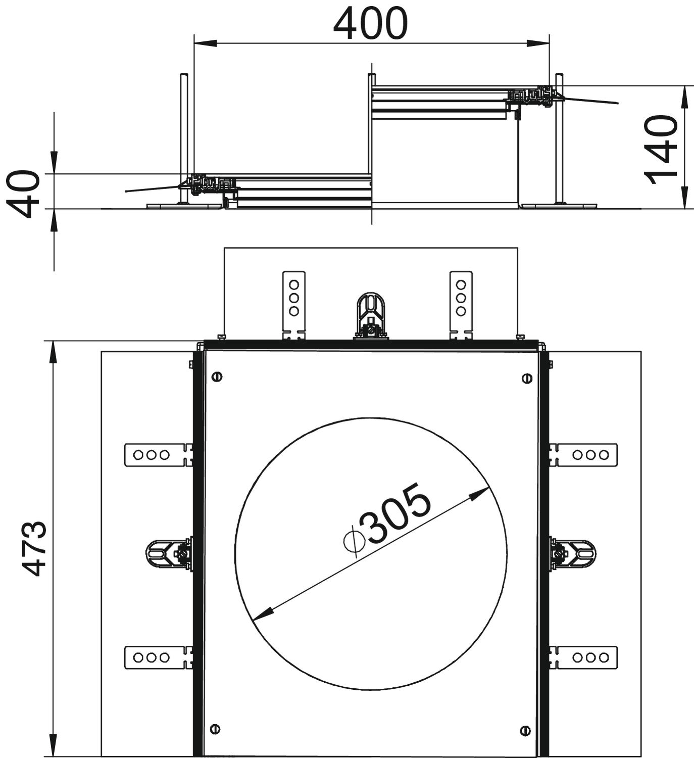 Produkta aprakstsMontāžai gatava kanālu montāžas vienība ar ierīču montāžas vāku iebūvējamās vienības ar nominālo izmēru R9 iebūvēšanai, sastāv no sānu profiliem ar pieliktu elastīgu sānu sienu no metāla sieta, grīdas seguma salaidumprofiliem, kanāla vāka ar cieši noslēgtu montāžas atveri un kanāla gala elementa. Piegādes komplektā ietilpst 3 augstumā regulējami stiprinājuma leņķi, 3 betona enkuri, 1 vāka savienojuma balsts (bez augstuma regulatora - lūdzu, pasūtiet atsevišķi) un 1 komplekts leņķa atzarojuma izveidei.